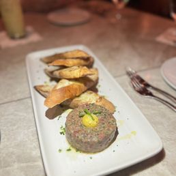 It's giving 5 stars. Absolutely amazing. I do not have ONE suggestion to add to this place. Get the bread!! Probably the fluffiest roll I've ever in my life. The butter that comes along with it OMG. Salad, YUM, love that they played it for both me and my husband to share. Ribeye-- FANTASTIC and the peppercorn sauce- I am obsessed. CHEF PLEASE TEACH ME. Drinks were so good and actually cheaper than most places these days. I WILL BE BACK SOON